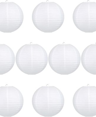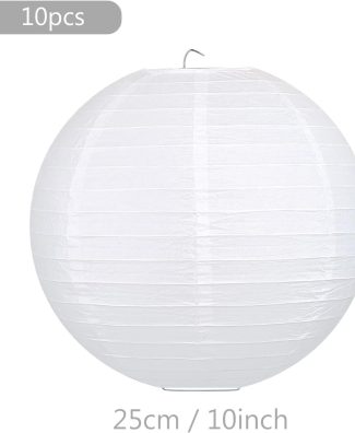 10Pcs White Paper Lanterns, Chinese Hanging Round Paper Lanterns Lamp for Birthday, Party, Christmas Decorations (10 inch)