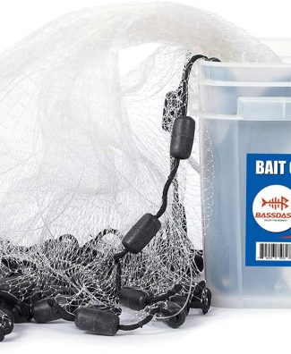 • BASSDASH American Saltwater Fishing Cast Net 3/8 1/4-Inch Mesh 4ft 6ft 8ft Radius, 1-Pound Per Foot, for Bait Fish with Utility Bucket Casting