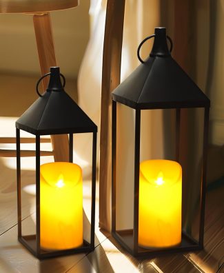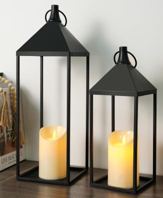 • Modern Farmhouse Lantern Decor, 2Pcs Metal Candle Lanterns with Flameless Candles Black Decorative Lantern for Front Porch Covered Patio Dining Table Entryway Table Wedding Home Decor