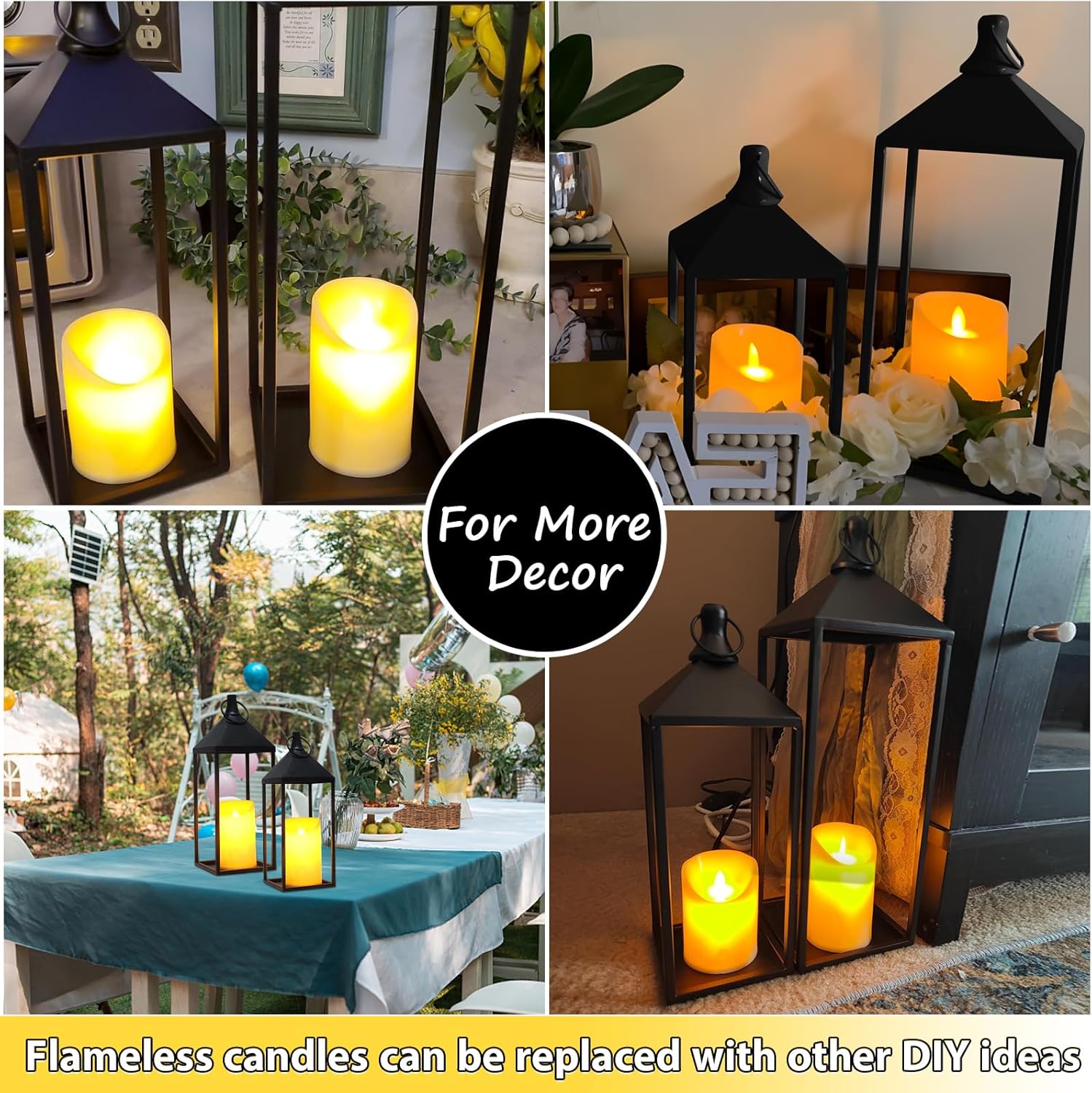 Modern Farmhouse Lantern Decor, 2Pcs Metal Candle Lanterns with Flameless Candles Black Decorative Lantern for Front Porch Covered Patio Dining Table Entryway Table Wedding Home Decor